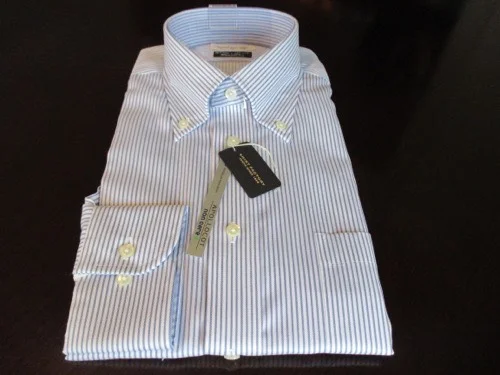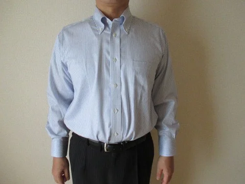 普段はノーネクタイなので、ブルーのストライプ柄のボタンダウンシャツを購入しました。