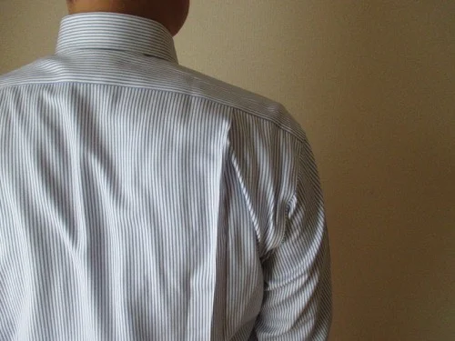 横から見た襟の印象は、主張が強すぎず自然な感じです。それでいて、清潔感もあります。